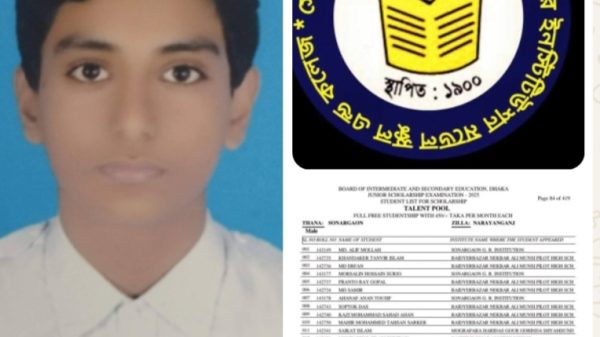 সোনারগাঁয়ে জেএসসি ট্যালেন্টপুলে প্রথম স্থান অর্জন করেছে আলিফ মোল্লা