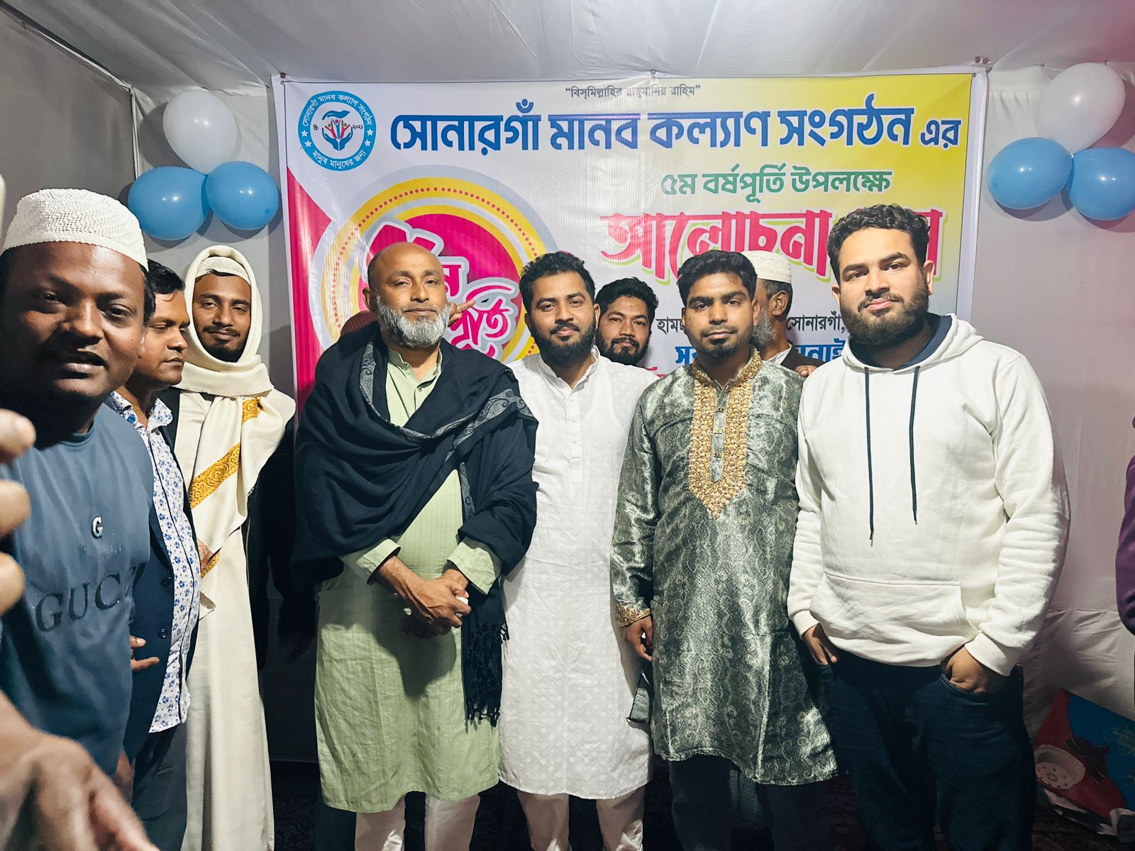 নারায়ণগঞ্জের সোনারগাঁ উপজেলার হামছাদি পশ্চিমপাড়া এলাকায় সোনারগাঁ মানব কল্যাণ সংগঠনের ৫ম প্রতিষ্ঠাবার্ষিকী উপলক্ষে এক আলোচনা সভা অনুষ্ঠিত হয়েছে।