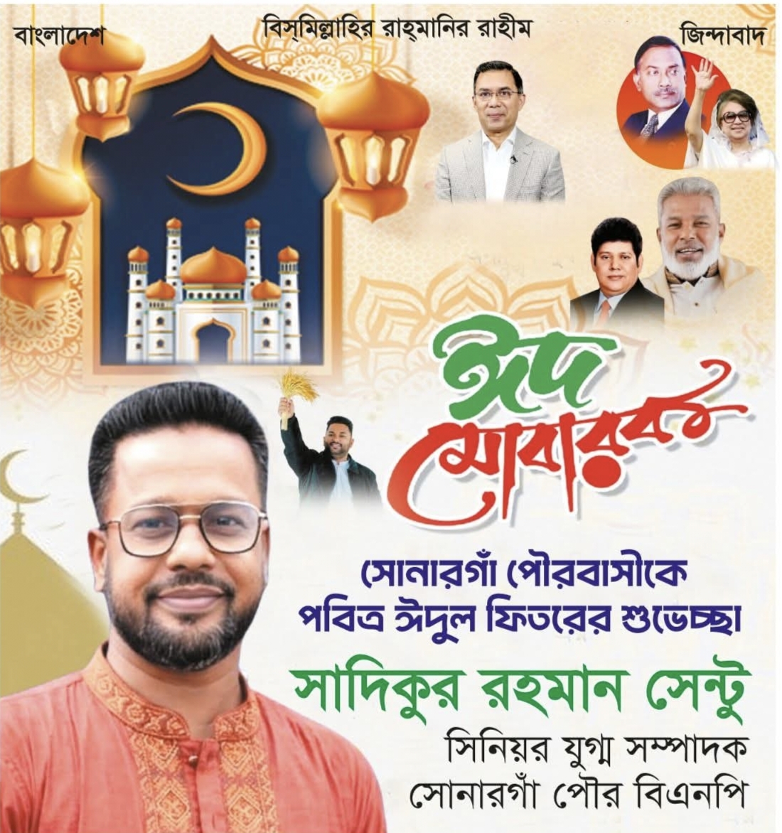 পবিত্র ঈদুল ফিতর উপলক্ষে সোনারগাঁ পৌরবাসীসহ দেশ-বিদেশে অবস্থানরত সকল মুসলিম উম্মাহকে আন্তরিক শুভেচ্ছা ও অভিনন্দন জানিয়েছেন সোনারগাঁ পৌর বিএনপির সিনিয়র যুগ্ম সম্পাদক সাদিকুর রহমান সেন্টু।